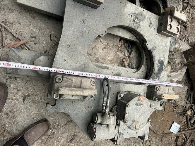 Nguyên lý làm việc: Khi điều khiển được thao tác kéo vào dòng dầu thủy lực được dẫn nguồn từ bơm thủy lực qua van chia dầu tới mô tơ thủy lực, mô tơ quay làm dẫn động hộp giảm tốc quay truyền tới bánh răng chủ động ăn khớp với vành răng làm quay mâm quay.